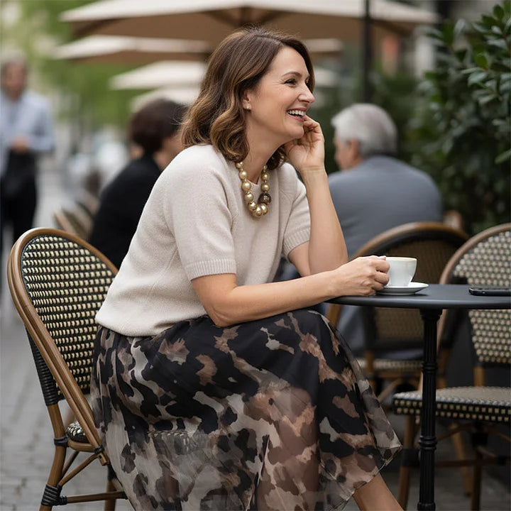 Képzeld el, hogy este a Duna-parti étterem teraszán, a puha pulóverben és feltűnő mintájú szoknyaöltönyben parázslóan nézel ki – ez a kombináció épp annyira kifinomult, mint romantikus! Vagy egy budapesti kiállítás nyitónapján, ahol a leopárdmintás darab a figyelem középpontjába állít, de a pulóver kerek nyaka egész nap kényelmet biztosít. 🌉✨