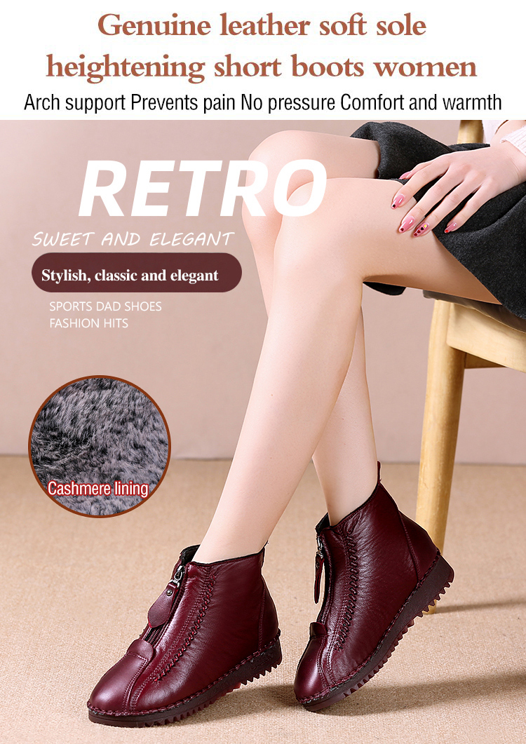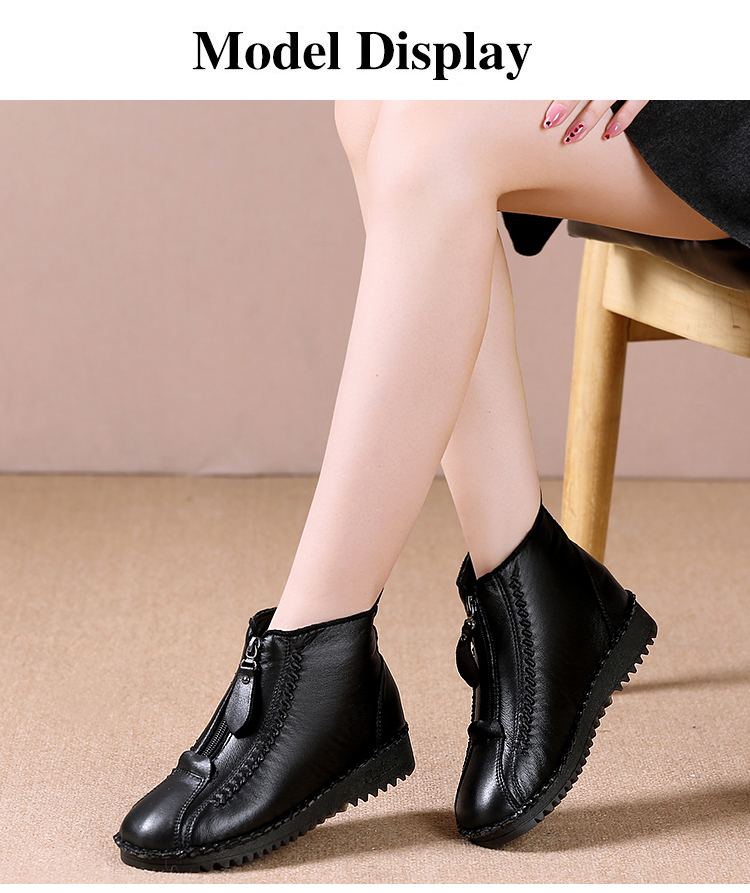 【35-42】 Őszi és téli, puha talpú, rövid cipzáras női csizma, divatos és kényelmes