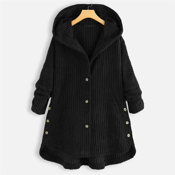 Női egyszínű, kapucnis, gombos, bordázott dzseki