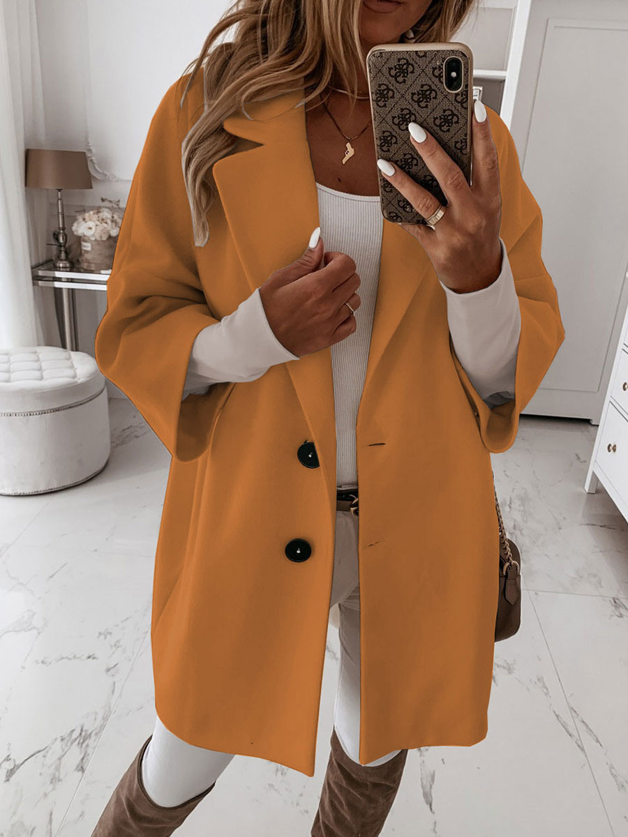 Casual Loose Solid Color Double-breasted Woolen Coat