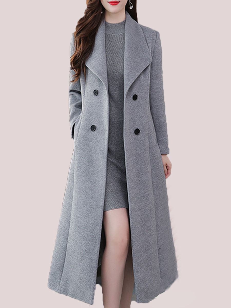 Lapel Plain Patch Pocket Single Breasted Long Woolen Coat