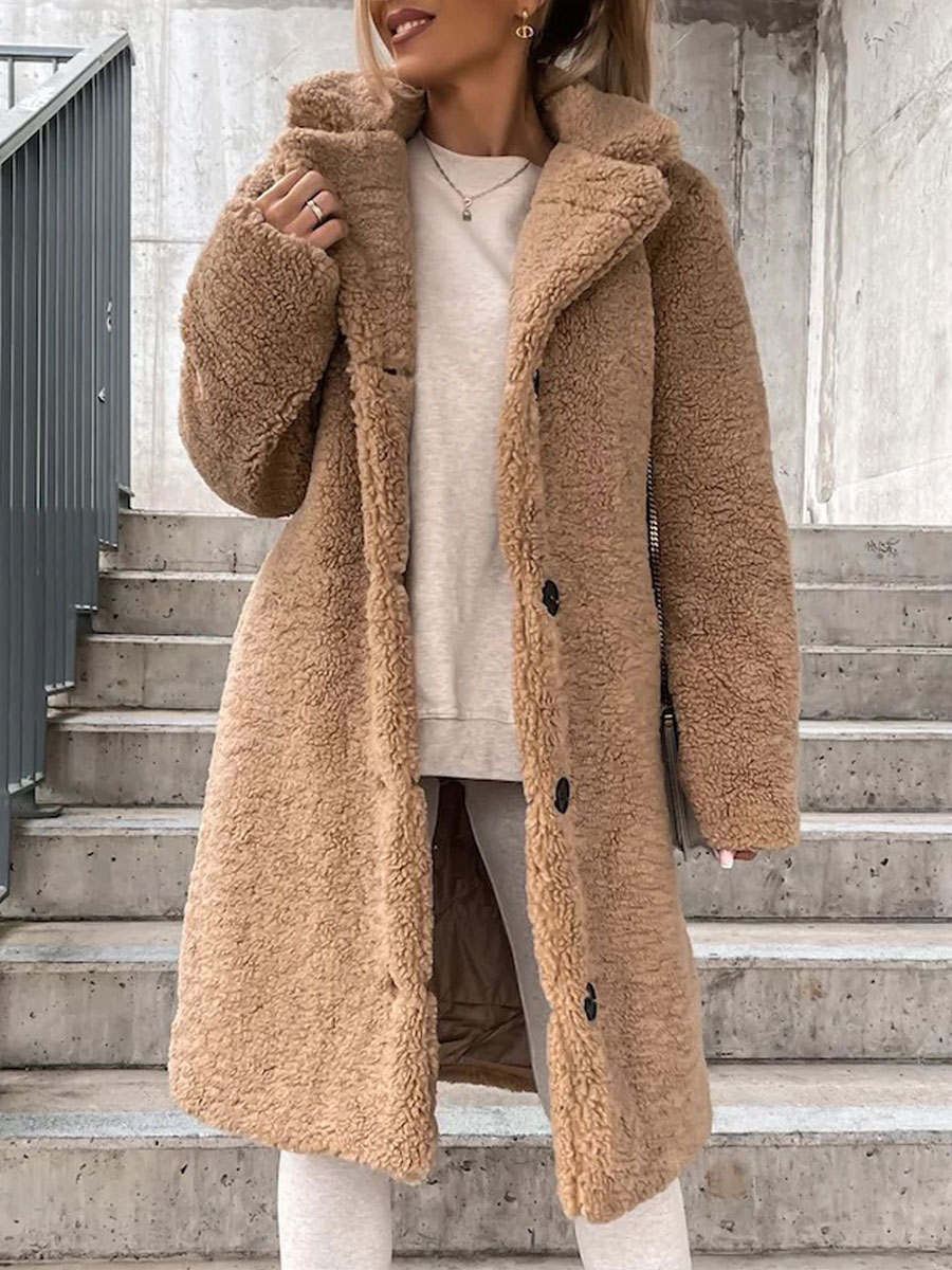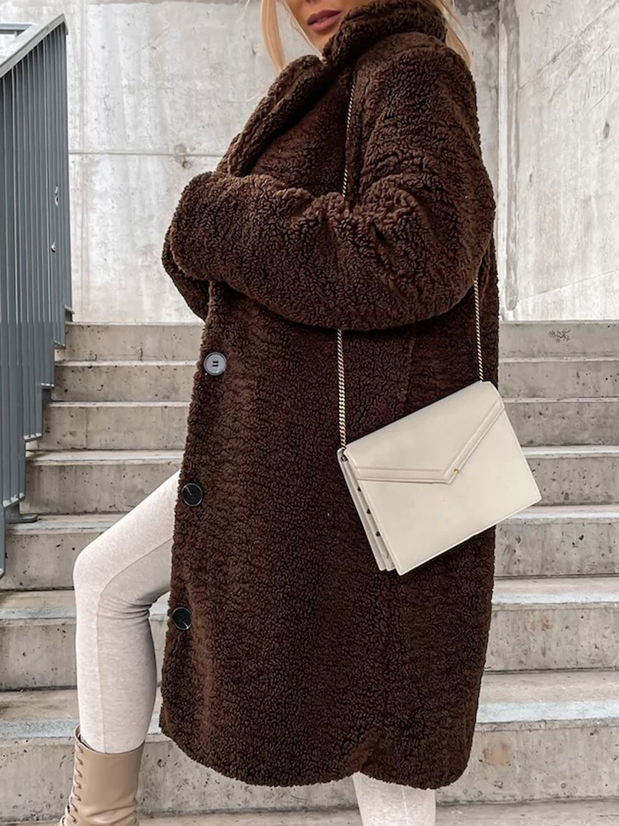Casual Loose Solid Lamb Wool Single Breasted Coat