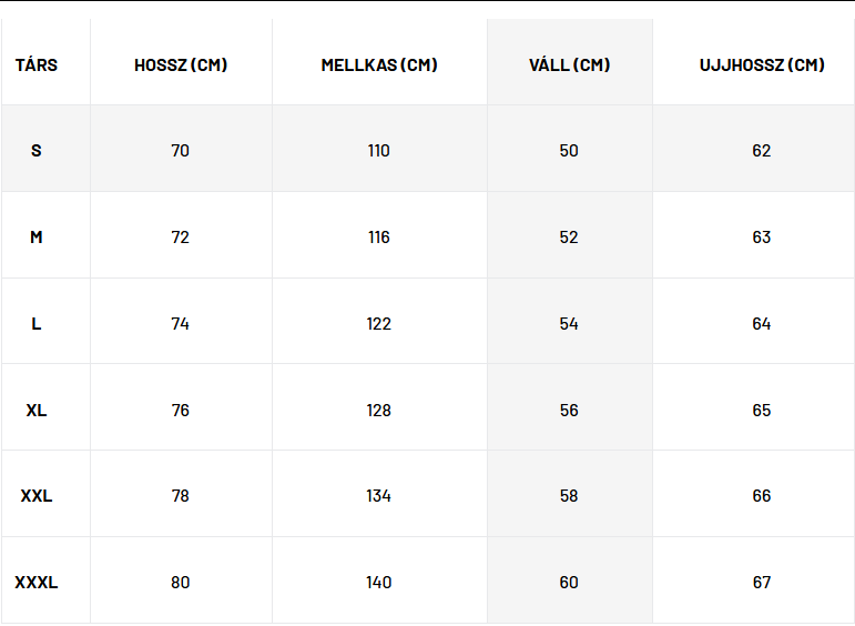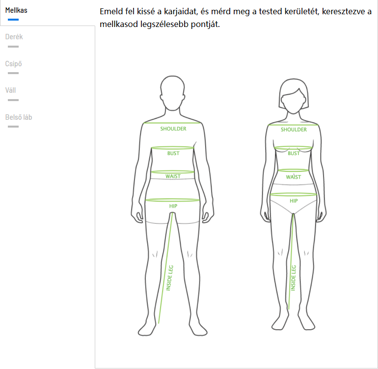 Megjegyzés: A megadott méretek a termék fektetett állapotára vonatkoznak, nem a testméretekre.