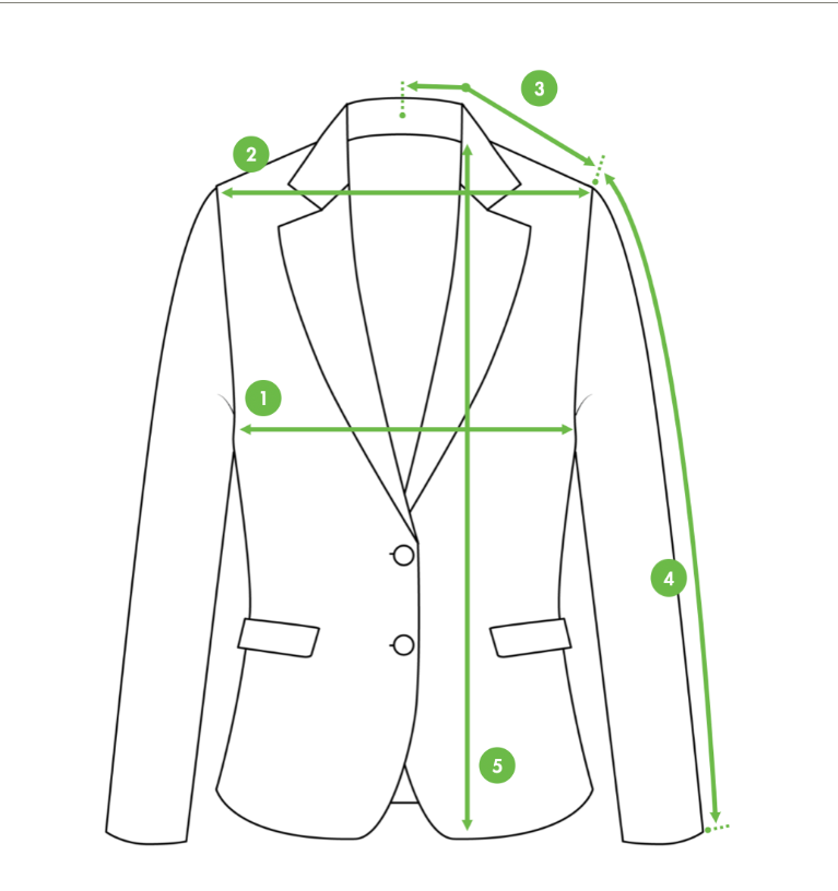 3. Az ujjhosszt a 3. és 4. pont között mérjük. (A 3. pont a kabát nyakának belső oldalán található középső varrás.)