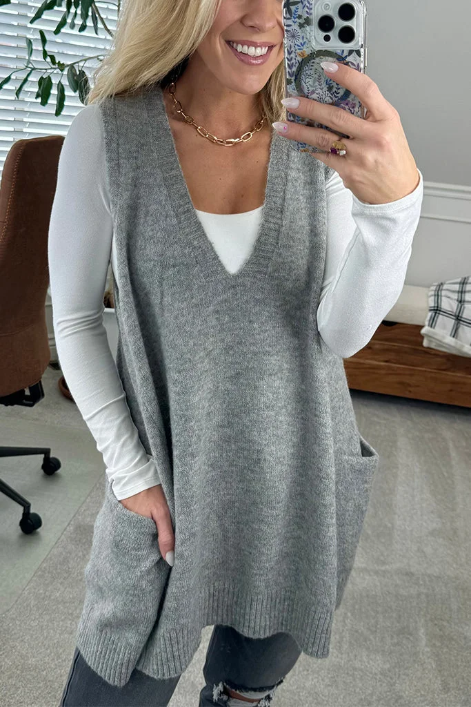 Női kényelmes zsebes V-nyakú ujjatlan pulóvermellény