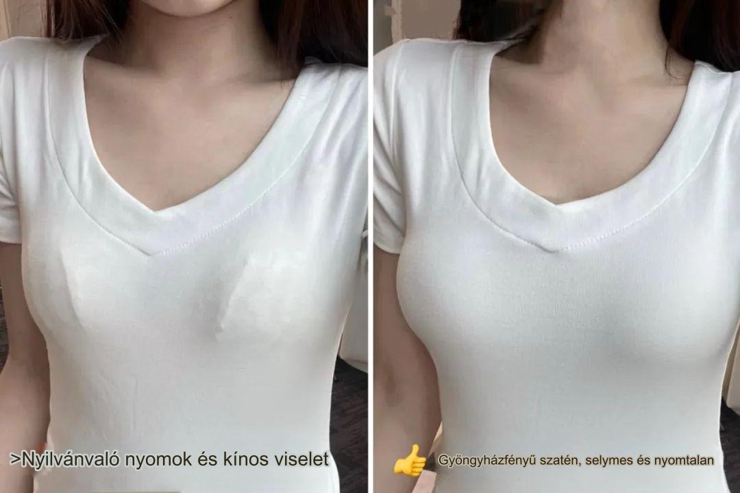 A lényeg, hogy a felsőtest kényelmes és nyomtalan A W alakú kétrétegű zselés ragasztó könnyen megtámasztja, a lifting és zsugorító hatás pedig kiváló. Kis és nagy mellű nővérek bátran viselhetik!