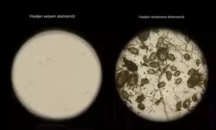 Két hónapos viselet után összehasonlítottam az előző fehérneművel, és mikroszkóp alá helyeztem Ebben a selyem fehérneműben szinte nincs baktérium.